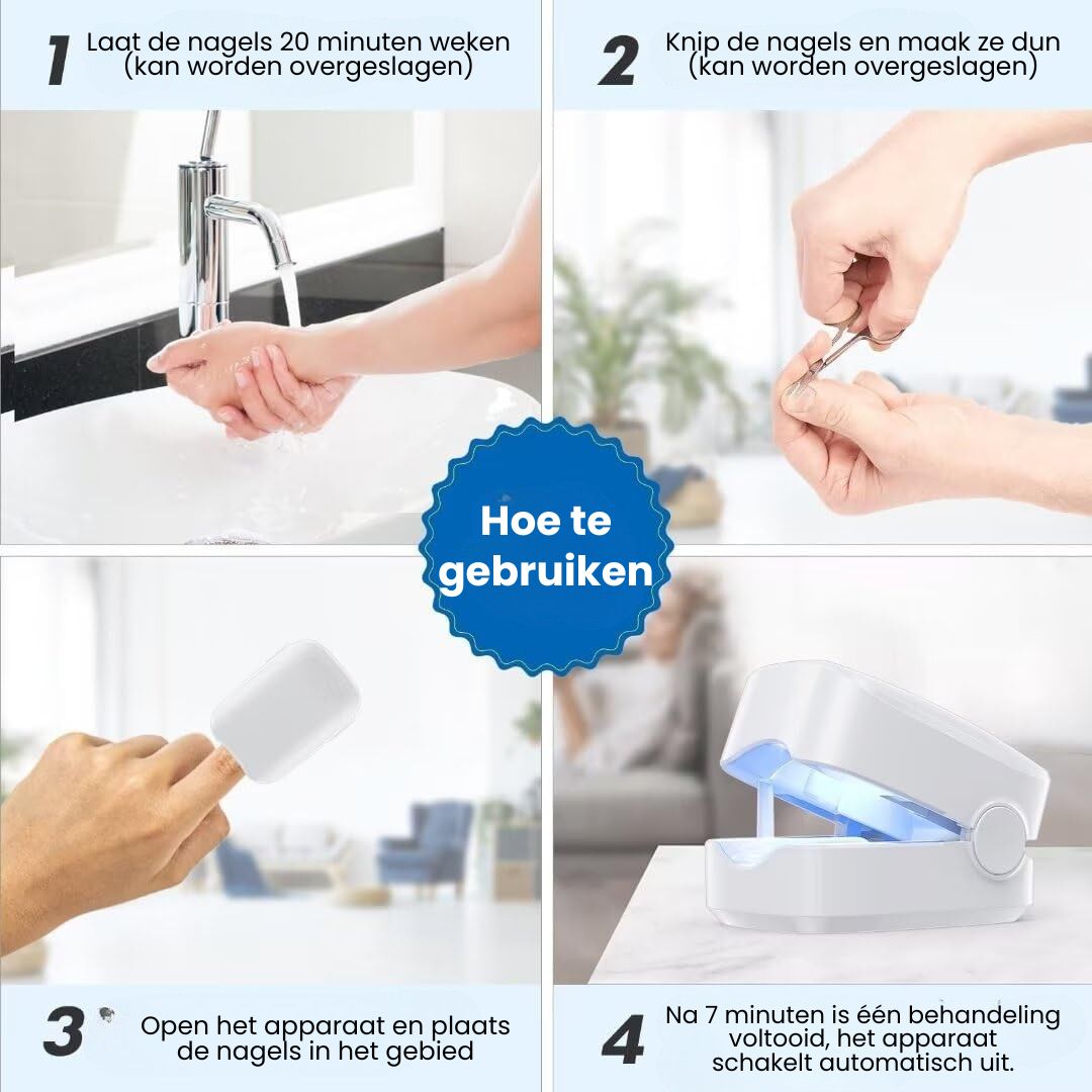 Dit innovatieve apparaat helpt betrouwbaar bij schimmelinfecties, verdikte of verkleurde nagels en een broze nagelstructuur – zonder chemicaliën, zonder bijwerkingen en zonder dure doktersbezoeken. Het ondersteunt de natuurlijke regeneratie, bevordert gezonde nagelgroei en versterkt het immuunsysteem, zodat de schimmel permanent kan verdwijnen.