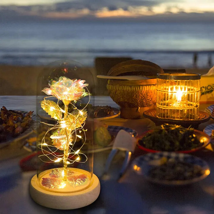 Stel je voor: een roos die nooit verwelkt, gevangen in een elegante glazen koepel met zacht LED-licht. Geen verwelking, geen vervliegende geur – gewoon een symbool van eeuwige liefde, schoonheid en bijzondere momenten.