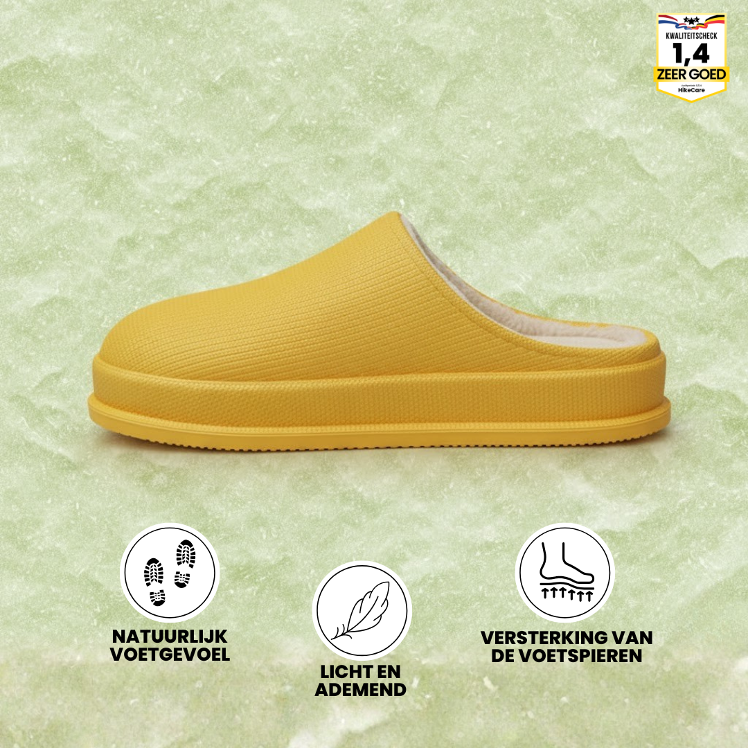 Ervaar pantoffels die druk verlichten, je houding verbeteren en de hele dag comfort bieden – zowel binnen als buiten.