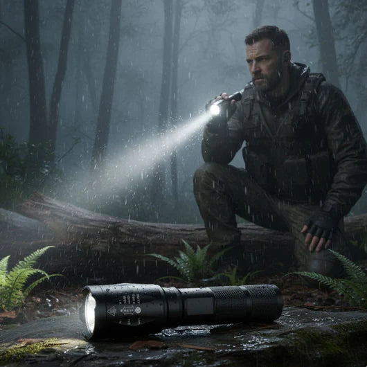 De tactische zaklamp is vervaardigd uit een aluminiumlegering van ruimtevaartkwaliteit, ideaal voor zware omstandigheden.